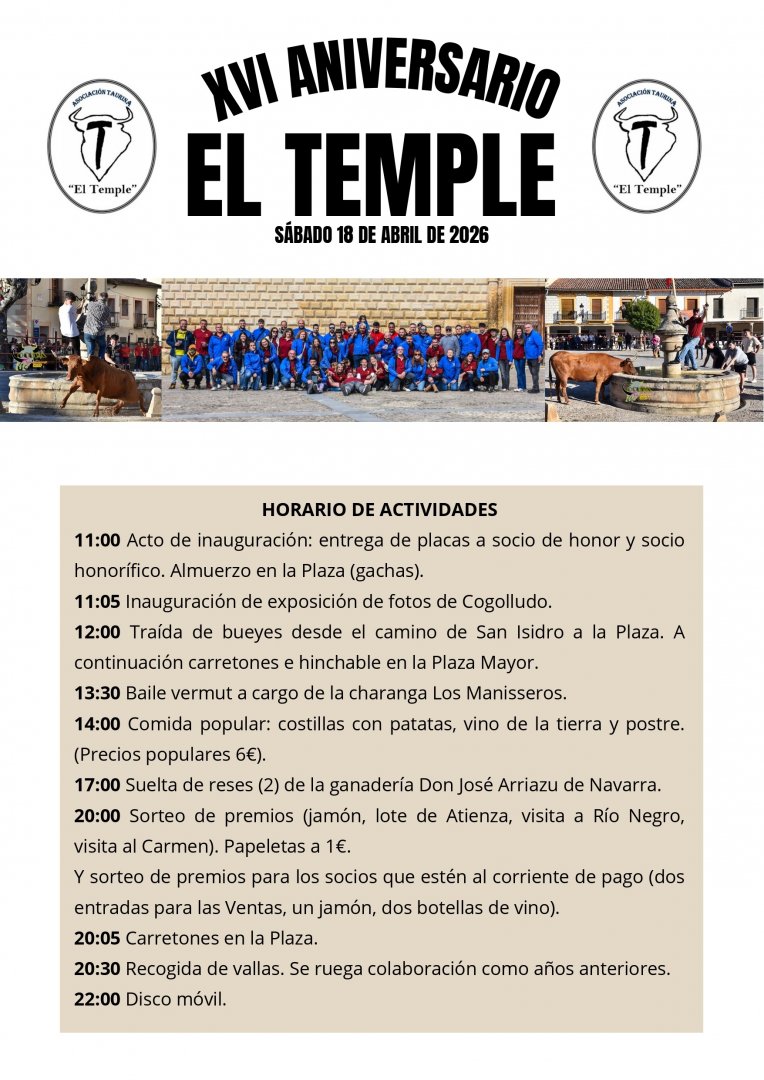 SÁBADO 18 DE ABRIL (FESTEJO TAURINO) : LAS VISITAS GUIADAS SE REALIZARÁN A LAS: